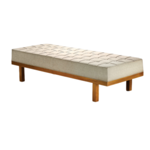 Descrição: Estrutura: Madeira Tonalizada (natural, castanho ou ebanizado). Revestimento: Couro Natural, Couro Ecológico, Tecido Quaker ou fornecido. Medidas: 180 X 70 X 45H.