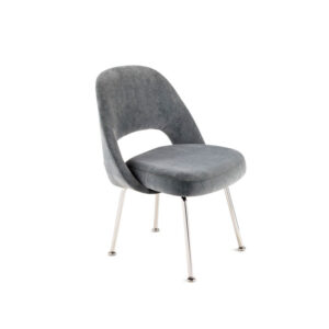 Descrição: Estrutura em fiberglass. Espuma no assento e encosto, revestida conforme solicitação. Base em aço inox polido, 4 pés sapata polida e ajustável. Revestimento: Couro Natural, Couro Ecológico, Tecido Fábrica ou Tecido Fornecido. Medidas: 57 X 55 X 81H